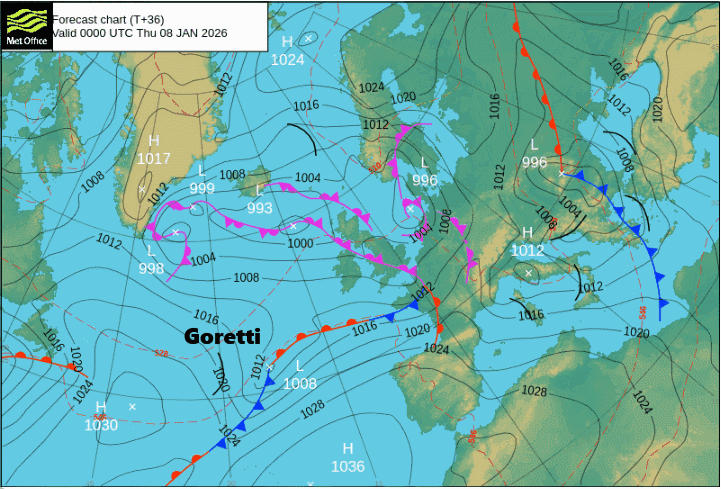 Entre el 8 y el 9 de enero de 2026 se formará en el Atlántico Norte la borrasca Goretti, que experimentará una rápida profundización que alcanzará la categoría de ciclogénesis explosiva, afectando a zonas de Europa occidental.