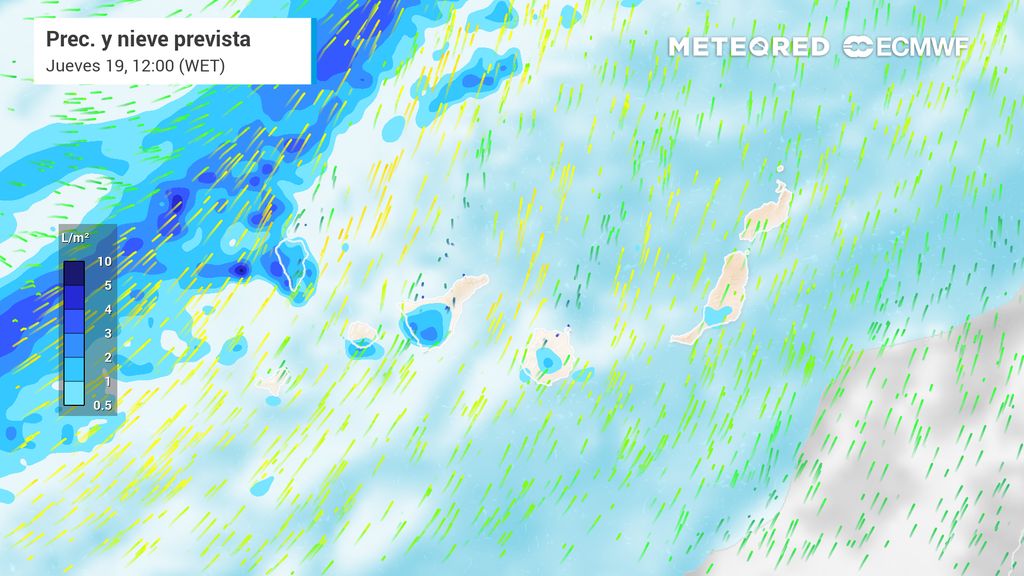Las precipitaciones también aumentarían de oeste a este. Para este día, un frente muy activo barrería las islas de oeste a este para llegar a las islas orientales a primeras horas del viernes 20.