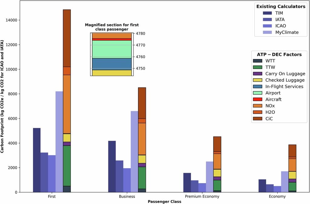 Según una nueva investigación de la Universidad de Surrey, muchas calculadoras de carbono utilizadas por las aerolíneas y las empresas de viajes están subestimando drásticamente el daño climático real causado por los viajes aéreos. Ahora, una nueva calculadora lo hace incluso por clase de los asientos.
