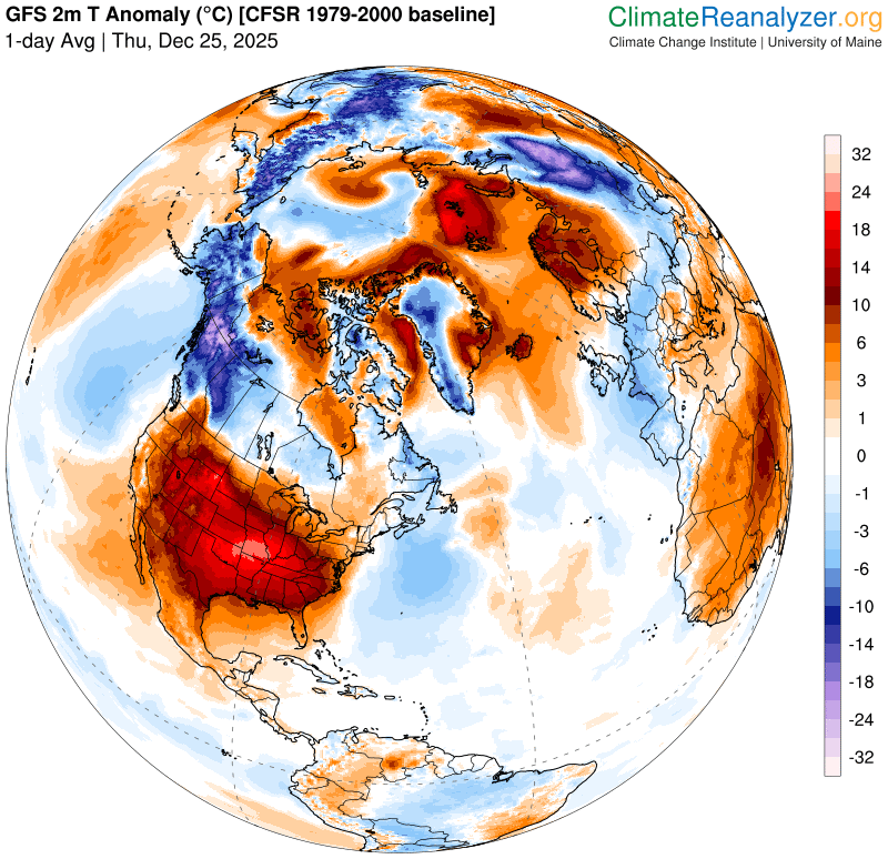 En resumen, una Navidad atípica en muchas zonas de Norteamérica y Europa con estructuras dipolares frías-cálidas muy marcadas para la época.
