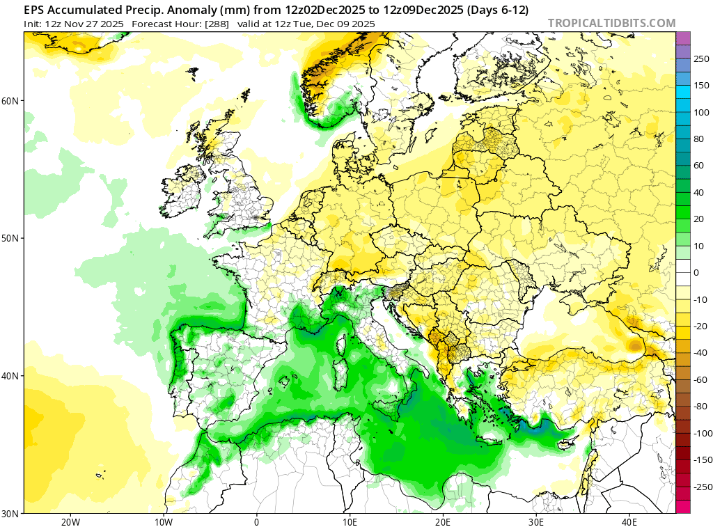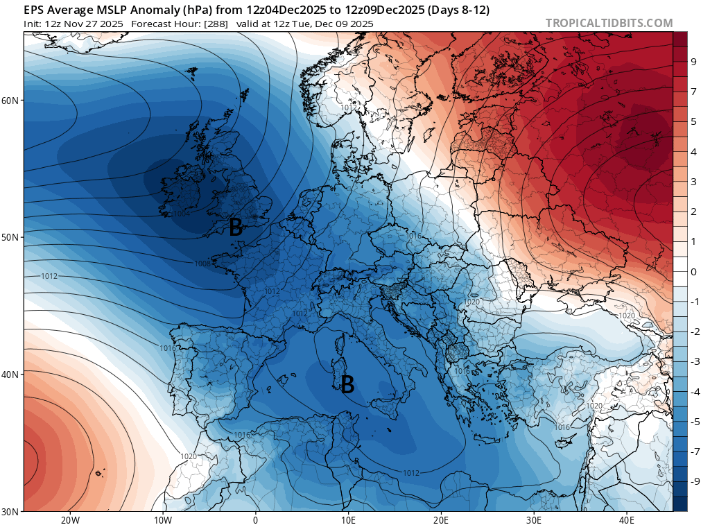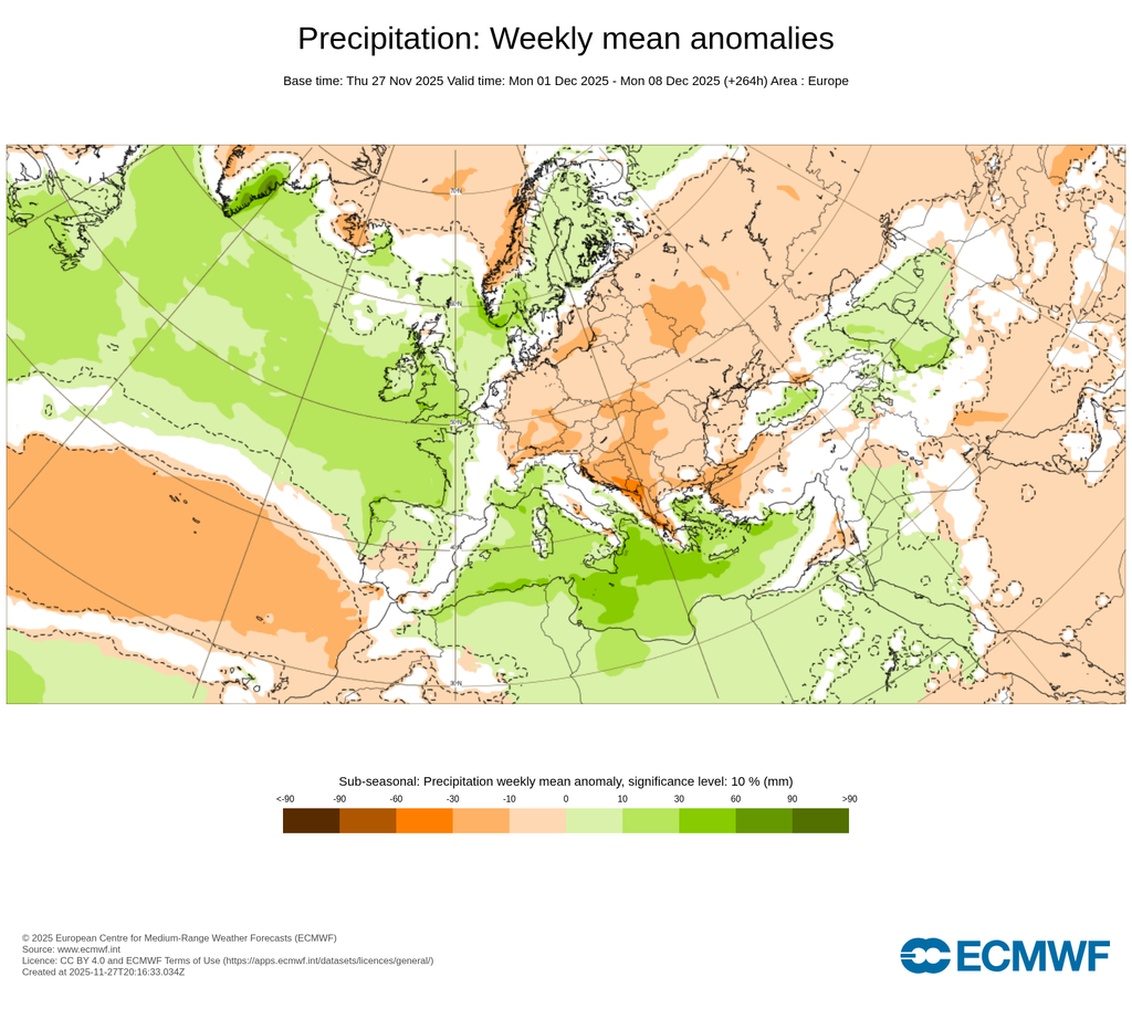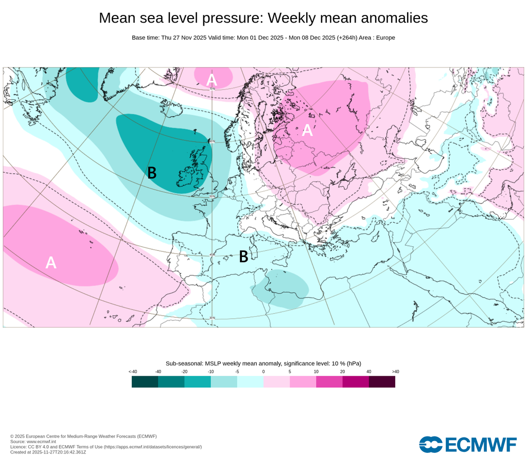 Habrá paso de frentes y flujos del oeste con alternancias de precipitaciones y periodos de estabilidad, con temperaturas más o menos normales como para inicios de un mes frío como es diciembre, cuando entrará el invierno climatológico (1 diciembre).
