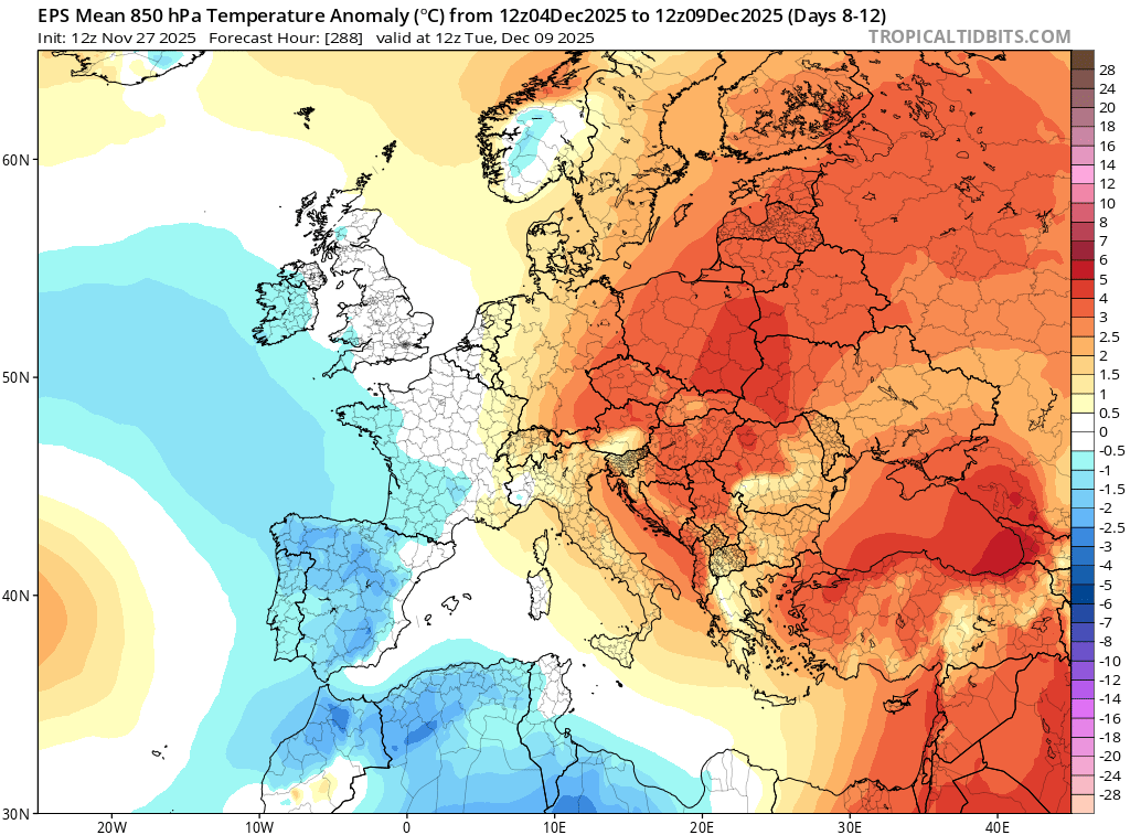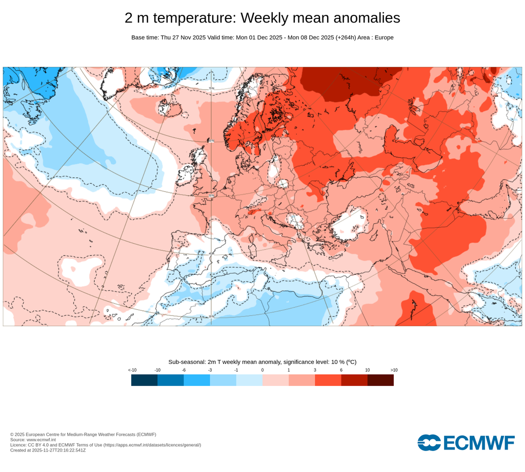 A día de hoy, las predicciones para las partes centrales del Puente de inicio de diciembre se parecen a lo comentado anteriormente.