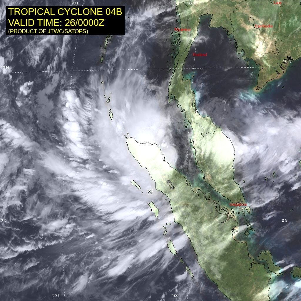 El ciclón tropical 04B se formó ayer en un lugar inusual: el estrecho de Malaca, entre Sumatra y la península malaya. Según los expertos de la zona, este es el primer ciclón tropical registrado en esta área.
