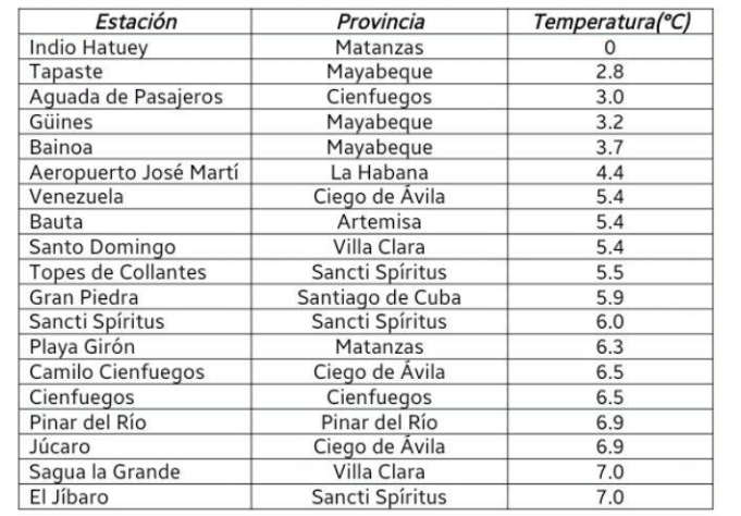 Hecho histórico en Cuba con nuevo récord nacional de temperatura mínima de 0ºC, nunca antes alcanzada