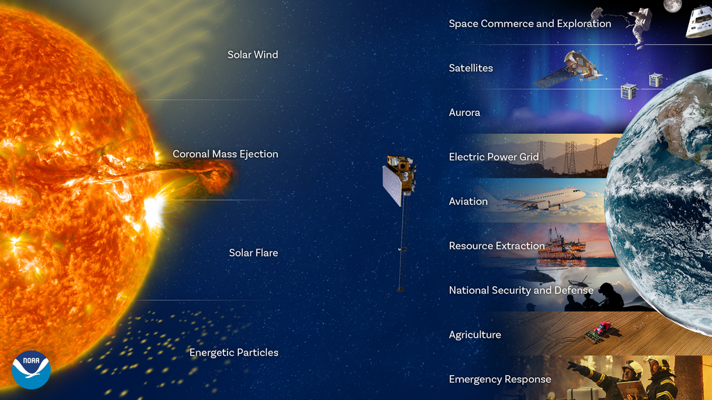 Algunas naciones han creado su Servicio de Predicción de Tiempo Espacial para prever estas interferencias que el Sol causa en la Tierra, tanto en la atmósfera como en la superficie. El hecho más anecdótico son las auroras, pero detrás de ellas, y cuando las erupciones solares son muy intensas, las repercusiones pueden ser mayores.