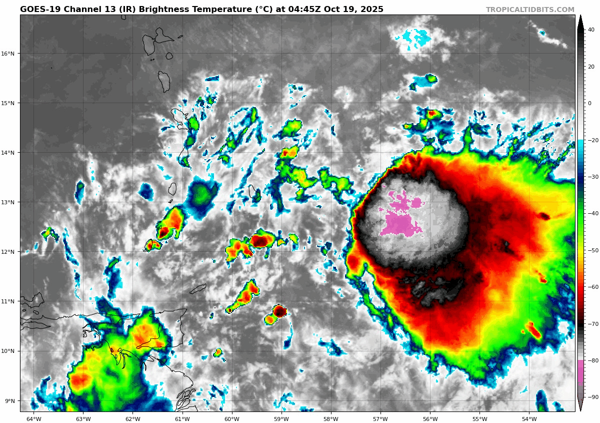 Una onda tropical ubicada a un par de cientos de kilómetros al este de las Islas de Barlovento está produciendo un área extensa y persistente de lluvias y tormentas. Los datos recientes de viento derivados de satélite indican que el sistema aún carece de una circulación cerrada, pero está produciendo vientos al norte y al este del eje de la onda.