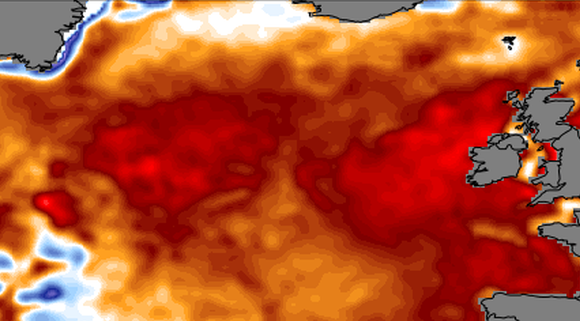 Durante los últimos meses algunos de los aumentos de calor marino más severos en la Tierra están ocurriendo en los mares que rodean el Reino Unido e Irlanda. Las mediciones satelitales muestran que las temperaturas del agua en ciertas áreas están muy por encima del promedio para esta época del año