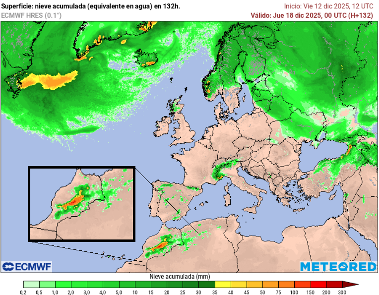 Un hecho curioso se podría producir a mediados de diciembre de 2025: algunas áreas de Marruecos podrían acumular más nieve que cualquier otra zona de Europa en los próximos días, según apuntan las predicciones.