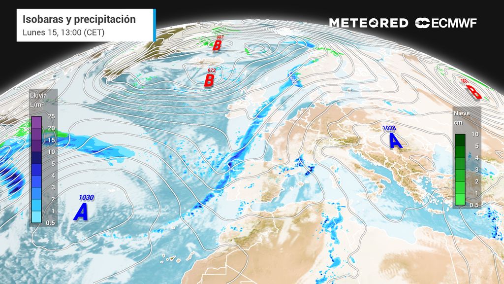 Las nevadas están previstas en zonas del norte y este de Europa, así como en zonas europeas de los Alpes y zonas altas de las montañas de España, desde los Pirineos hasta el Teide en Canarias, pero las acumulaciones máximas se podrían dar en Marruecos.