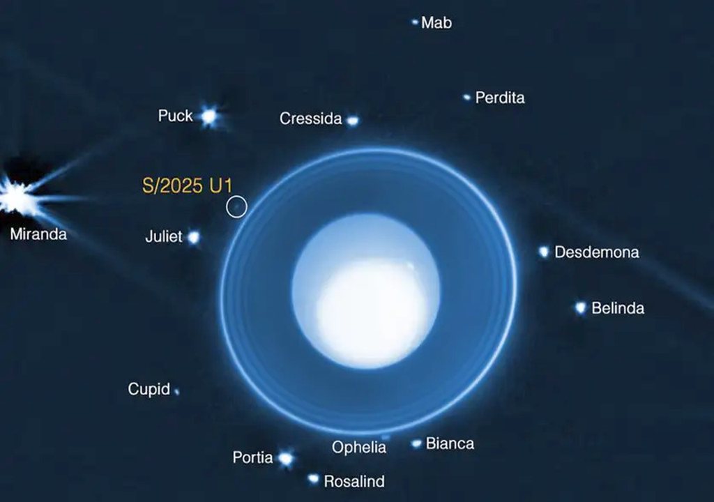 Estos descubrimientos fueron reconocidos formalmente y catalogados por el Centro de Planetas Menores a principios de año. Además del sistema expandido de Saturno, una nueva luna interior de Urano, designada provisionalmente como S/2025 U 1, fue detectada en datos del telescopio espacial James Webb, JWST, en infrarrojo cercano; este objeto mide solo 8-10 km de diámetro y orbita dentro de la región interior de los satélites de Urano, sumándose a las 29 lunas conocidas de ese planeta.