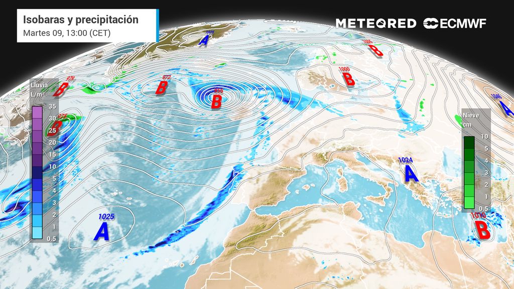 Habrá que esperar para el viernes la llegada de otro nuevo frente más activo con un nuevo descenso de temperaturas que podría dejar nevadas en zonas de montaña y en algunas zonas bajas de la meseta norte. Esto aún está por ver.