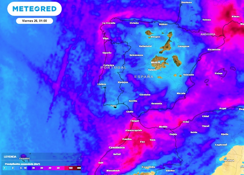 Para el 26 de diciembre, la borrasca mediterránea generaría un temporal de viento, mala mar y precipitaciones desde la Comunidad Valenciana hasta la costa e interior de Cataluña. Baleares también sufrirá las consecuencias de esta borrasca mediterránea.