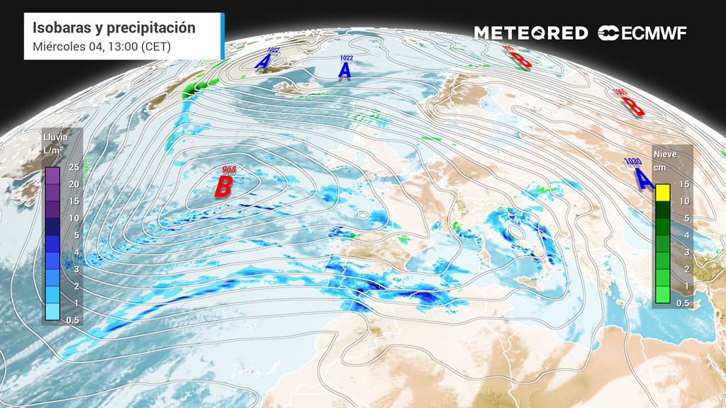 Las mismas borrascas atlánticas que nos traerán un flujo húmedo y relativamente suave que nos protegerán del frío helador que afecta a otras zonas de Europa. Las temperaturas no serán demasiado frías con valores, en general, superiores al promedio normal de esta época del año.