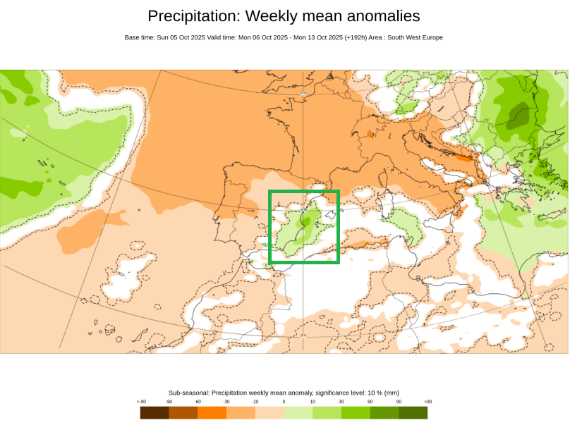La presencia de una vaguada fría y retrógrada en altura en la zona peninsular, que se podría aislar temporalmente en una débil dana, generaría un episodio de tormentas fuertes y lluvias intensas de origen mediterráneo durante la segunda parte de la primera semana completa de octubre de 2025, entre el 9 y el 12, al menos.