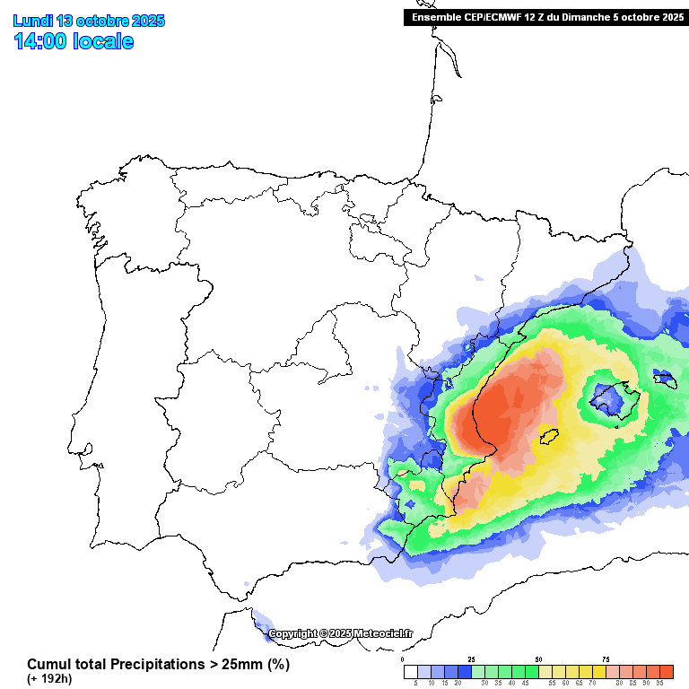Episodio de precipitaciones y tormentas intensas de origen mediterráneo en la semana del Día del Pilar de 2025