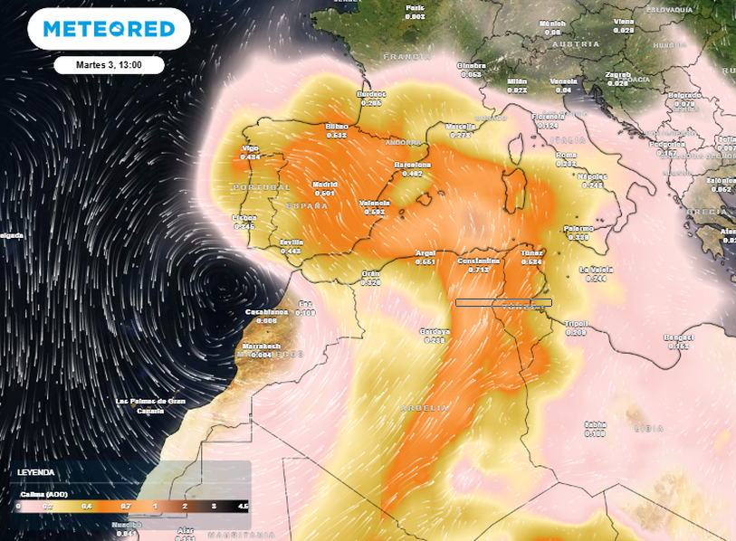 El polvo en suspensión y calima serán protagonistas con una entrada desde el norte de África. Se espera que se inicie en la segunda mitad del domingo 1 de marzo y que se extenderá a lo largo de la semana, afectando a la Península y Baleares.