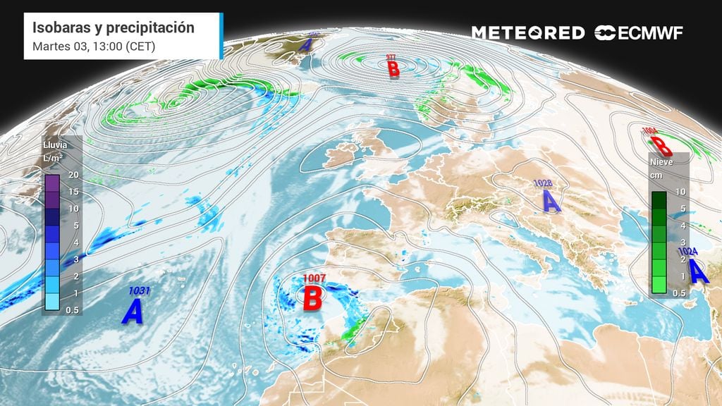 Es difícil precisar dónde podría llover y nevar a partir del miércoles 4 de marzo, pero la inestabilidad irá aumentando en gran parte de España, que se complicará con un temporal mediterráneo y sus flujos del este.