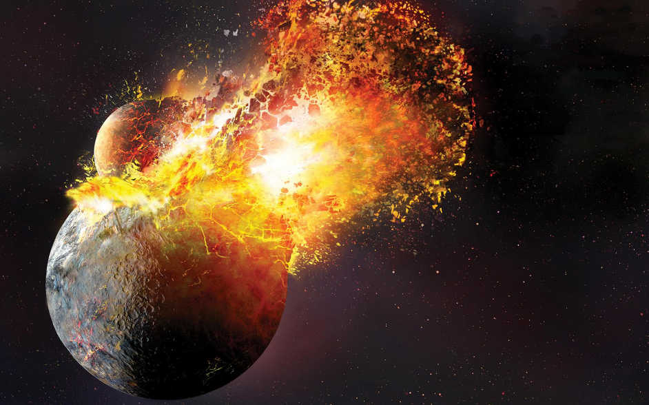 En esta fase inicial, la Tierra probablemente era rocosa y burbujeaba lava. Luego, menos de 100 millones de años después, un meteorito del tamaño de Marte impactó contra el planeta en su infancia en un singular "impacto gigante" que destruyó y fundió por completo su interior, restaurando así su composición química. Se cree que el material original del que estaba hecha la proto-Tierra se transformó por completo.