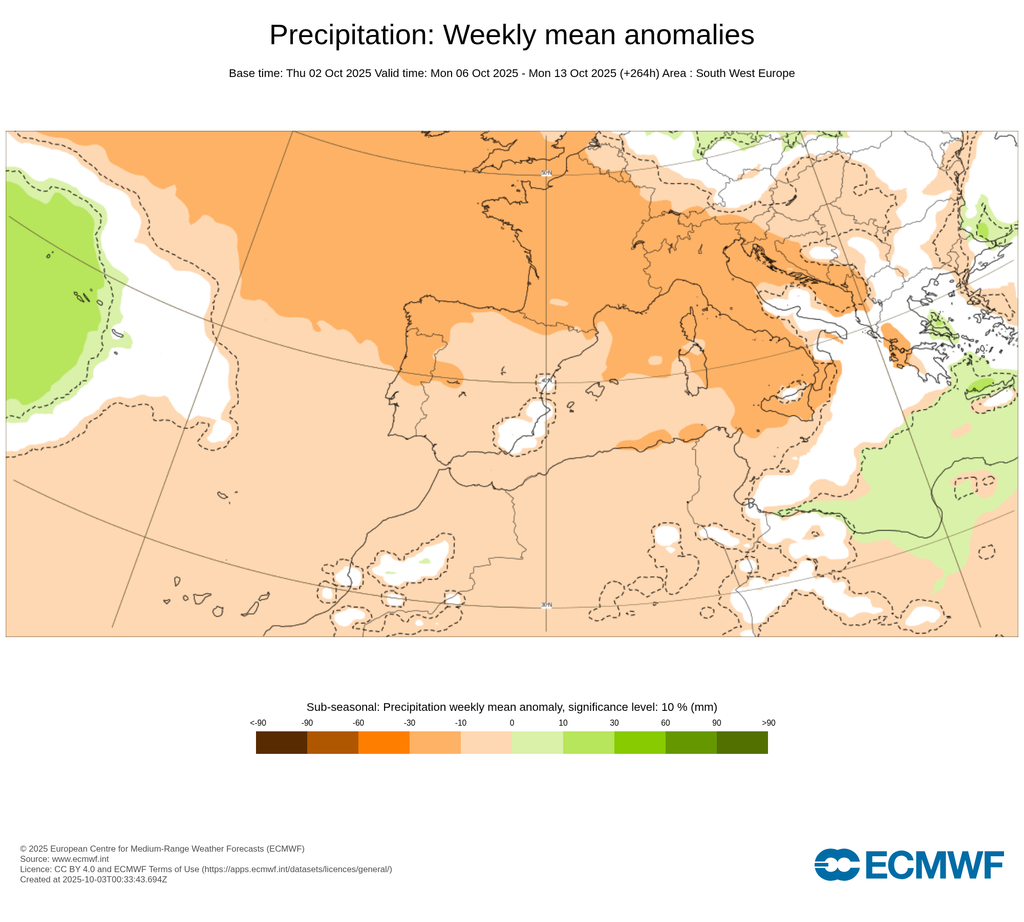 Sin precipitaciones significativas a 7-10 días vista, con largo veranillo y sin "cordonazo" de san Francisco