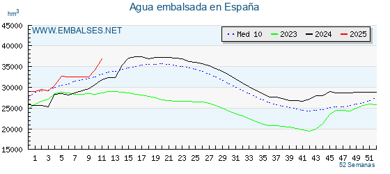 A falta de datos oficiales a final de mes, los datos provisionales de marzo de 2025 y su contribución al año hidrológico 2024-2025 son espectaculares, según el experto David Espín:
