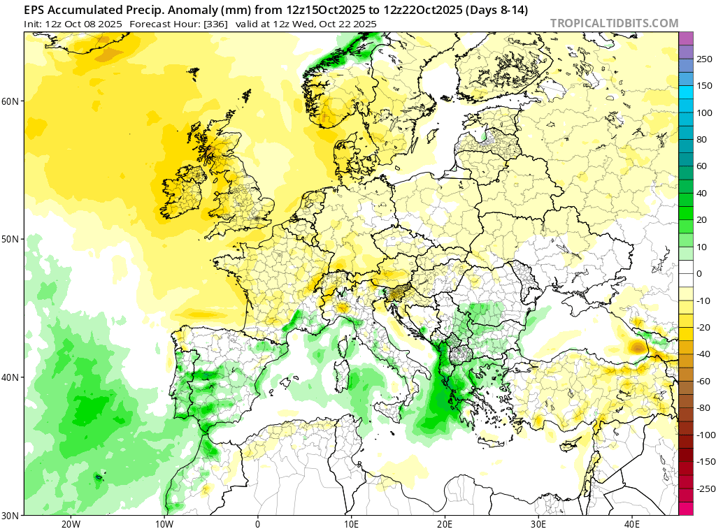 De esta manera, y como ha acontecido otras veces, las borrascas tendrán un pasillo abierto hacia la Península, iniciando un periodo de lluvias en la segunda parte de la semana venidera, posiblemente a partir del 17-18 de octubre. Las lluvias podrían aparecer en zonas del oeste peninsular con los vientos llovedores, entre otras.