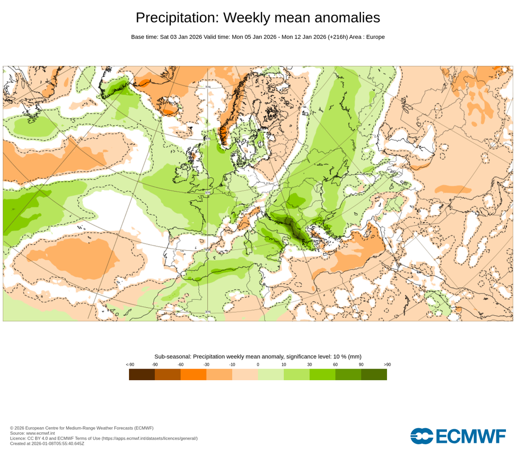 Los modelos numéricos de predicción ya presagiaban estos fenómenos a la vista de los mapas medios previstos para la semana del 5-11 de enero de 2026.