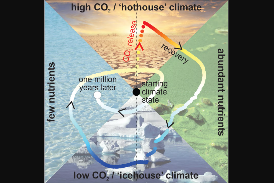 Sin embargo, en un mundo más cálido y con mayor actividad de las algas, los océanos pierden oxígeno, lo que provoca que el fósforo se recicle en lugar de enterrarse. Esto crea un ciclo de retroalimentación donde más nutrientes en el agua generan más plancton, cuya descomposición elimina aún más oxígeno, y más nutrientes se reciclan. Al mismo tiempo, se entierran enormes cantidades de carbono y la Tierra se enfría.
