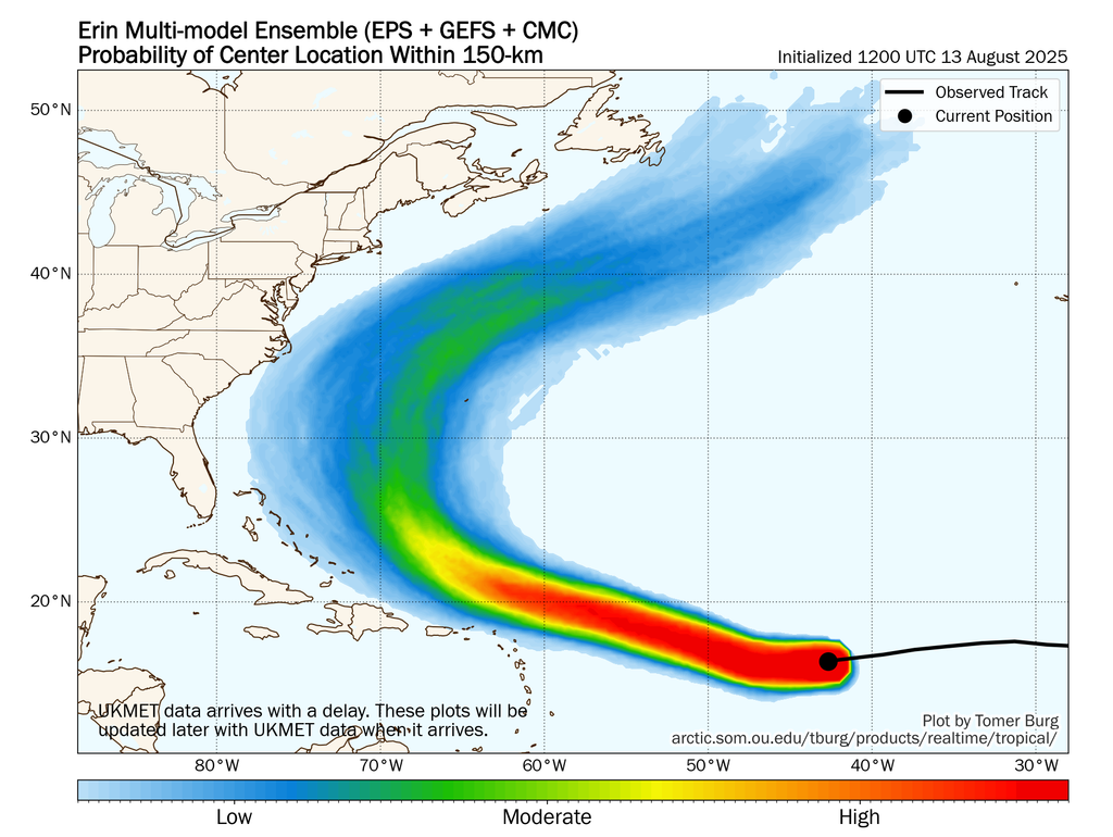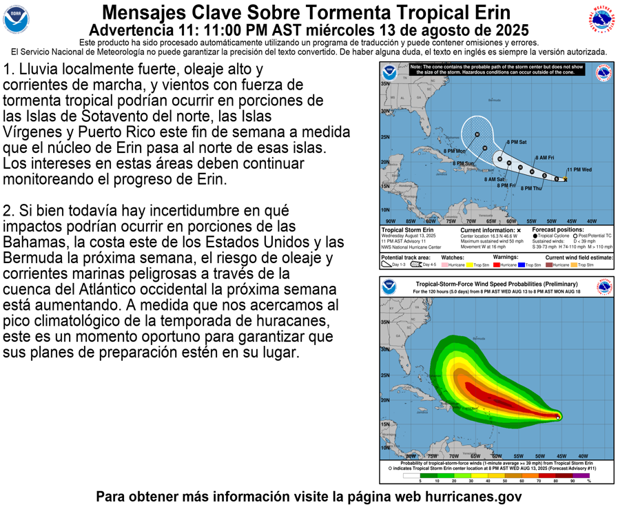 Hay una confianza creciente que Erin sea un huracán mayor y poderoso sobre el suroeste del océano Atlántico para este fin de semana.