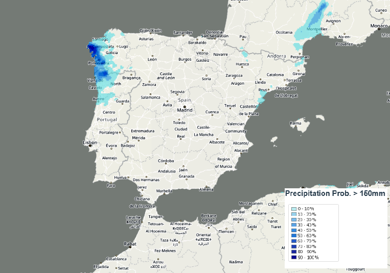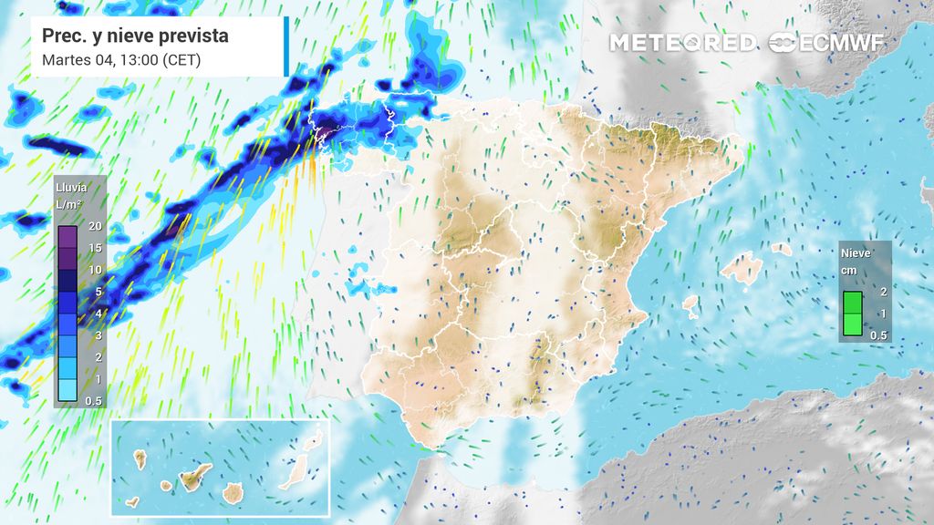 Se espera que un primer frente atlántico afecte al noroeste peninsular para el martes 4, y posteriormente a algunas áreas del Cantábrico occidental. Se esperan abundantes precipitaciones en Galicia. Los vientos frontales podrían dejar rachas intensas en Galicia y Cantábrico.